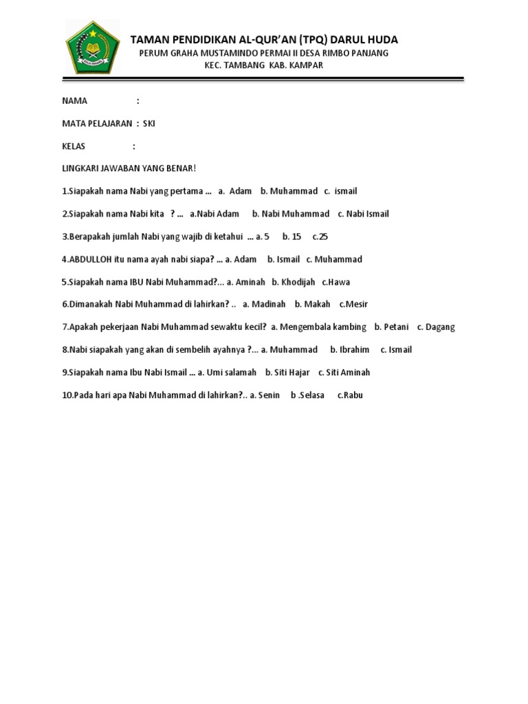 Siapakah nama ayahnya nabi ishaq brainly co id. 1 siapakah nama ayah dan ibu nabi muhammad saw 2 sebutkan tujuan allah swt menurunkan al qur an brainly co id. Mutiara akan terlihat menjadi lebih indah apabila sendiri, begitupun nabi muhammad saw yang terlahir dalam kedaan yatim. Siapa nama ayah nabi muhammad saw draft. Aminah dan bapanya tinggal di kota mekah. Entah itu ayah, paman, kakek dan buyut nabi saw. Siapa yang menjadi paman dan bibi nabi muhammad? Siapakah ayah nabi muhammad saw? Saat dilahirkan pada tahun 570 masehi, ayahnya sudah meninggal dunia. Diketahui suku ke3 barisan geometri adalah 36 dan suku ke5 adalah 81 tentukan suku pertama dan rasionya! A) ahmad b) abdullah 3) apakah yang berlaku ketika nabi muhammad dilahirkan ? Berikut keterangan dari imam nawawi dalam kitab sirahnya yang telah diringkas. Setelah ayah dan ibunya wafat, nabi muhammad diasuh oleh kakeknya, abdul muthalib, hingga usianya 8 tahun.